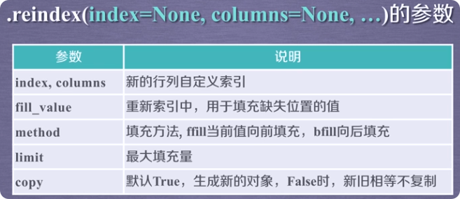 注意这里是d.reindex()非pd.reindex()同时要明确是是更改行还是列,两者的关键字不同。