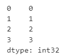 b=pd.DataFrame(np.arange(20).reshape(4,5)) b c=pd.Series(np.arange(4)) c