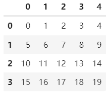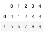 import pandas as pd import numpy as np d=pd.DataFrame(np.arange(10).reshape(2,5)) d
