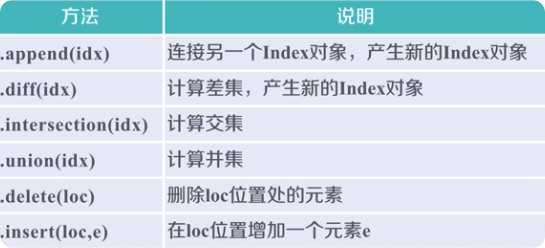 对NumPy有了解就会知道它也提供了一个数据结构表示:ndarray,两者的不同点在于NumPy更关注数据间的结构关系(以什么样的方式对数据组织和存取),而Pandas则更关注数据的应用(关注怎样有效提取并运算这些数据),我们可以通过索引快速定位并使用这些数据。