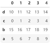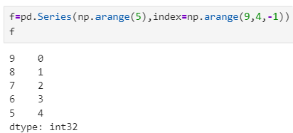 f=pd.Series(np.arange(5),index=np.arange(9,4,-1)) f