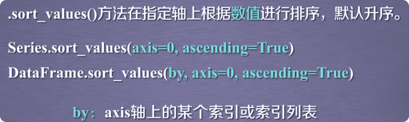 by可以指定特定的行或列,axis指定是按行还是按列进行。ascending=False:表示降序排列。默认NaN放到排序的最后。