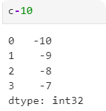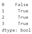 a=pd.DataFrame(np.arange(12).reshape(3,4)) a c=pd.Series(np.arange(4)) c a>c c>0