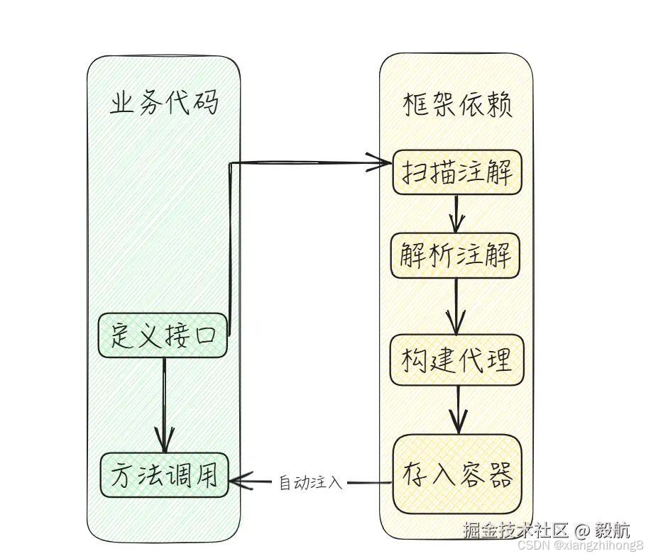 在设计过程中,我们主要借鉴@FeignClient远程调用的原理,首先定义一个@FeignWebFlux用以标注到接口上,然后我们的框架自动解析标有@FeignWebFlux的注解,并生成代理类,进而底层通过WebFlux来实现对服务的远程调用。