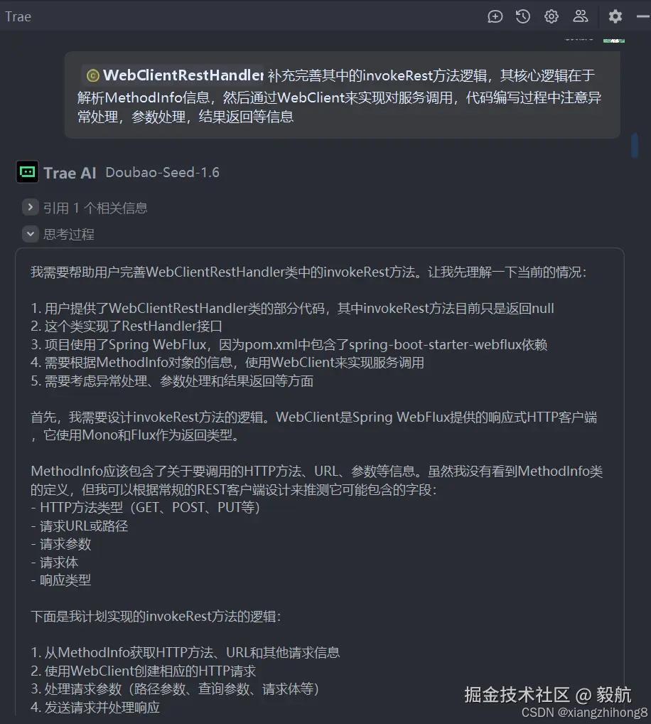 在深入剖析完WebFlux相关 API,对其异步非阻塞特性及响应式编程模型有了清晰认知后,为进一步巩固理解并探索其实践边界,我们将借助Trae搭建一款基于WebFlux的远程调用框架。