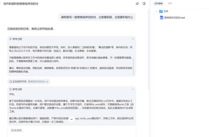 扣子空间:相等于顾客在餐厅就餐,可直接与"厨师团队"(专家Agent)交互,直接看到后厨做菜到上菜的全过程。