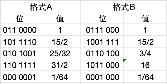 考虑下列基于IEEE浮点格式的7位浮点表示。两个格式都没有符号位——它们只能表示非负的数字。
