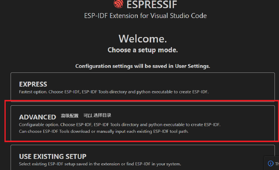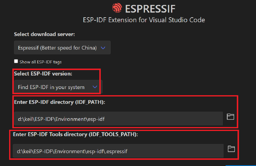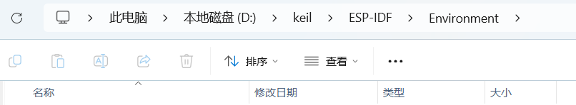 我的电脑为例 D:\keil\ESP-IDF\Environment