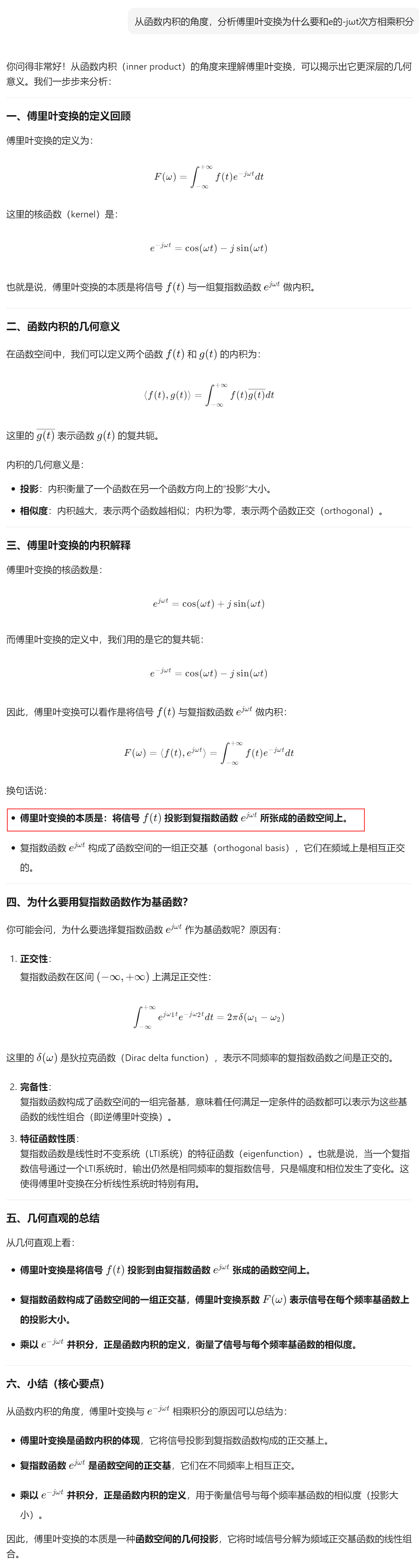 稳定的信号可以和e^jωt内积找系数,发现信号自身的频域性质,进而进行信号分析、处理。