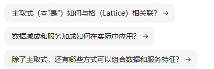 Q238、数据减成 和 服务加成 在 逻辑上则对应 析取(析“空”) 和 合取(合“有”)。逻辑上 组合两种特征 的 主取式 (本“是”) 形成格Lattice
