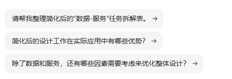 Q235、这一段的论您觉得 我说明白了吗?通过讨论,将整体设计 的设计工作 (三阶(三个阶段阶段) 三次(三个段) 三元 (变量) )简化为任务独立加上统一任务调度的 数据 和服务 两项工作了