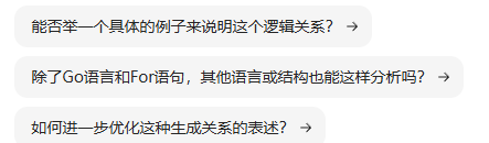 - 载体段:用‘-’连接,包含 “Go 语言”“For 语句”“Do 句子”,每个都有详细的补充信息(角色、术语、单位、要素、定位、量化等)。