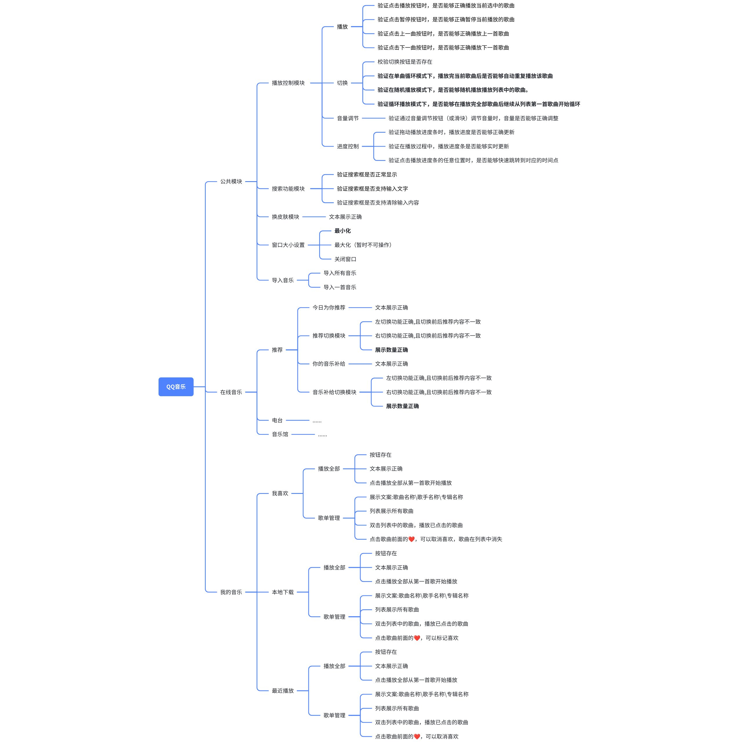 由于QQ⾳乐只有前端,没有后端,⽤例的设计也⽐较简单。后续遇到复杂项⽬,在⽤例设计时尽可能 详细