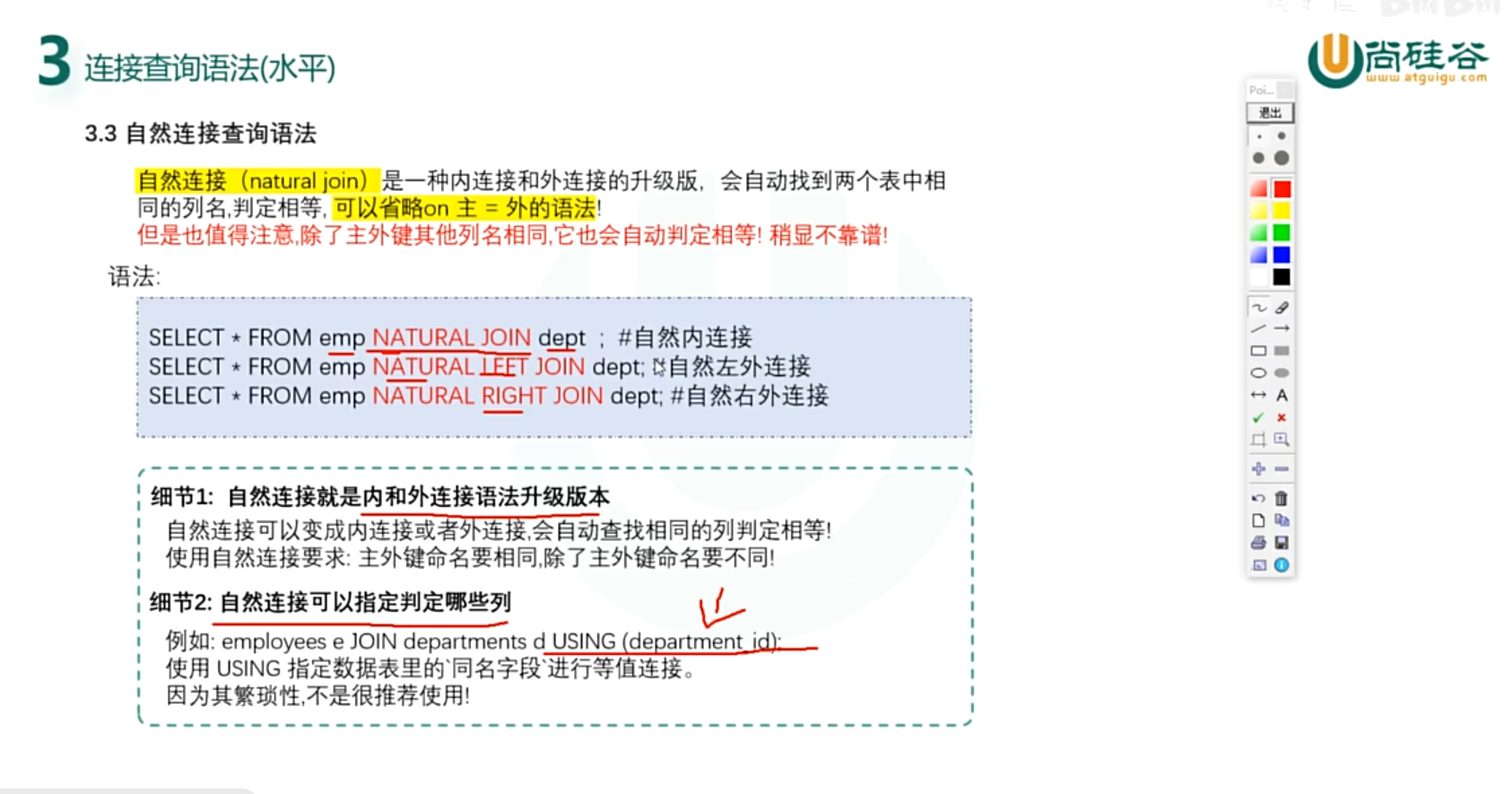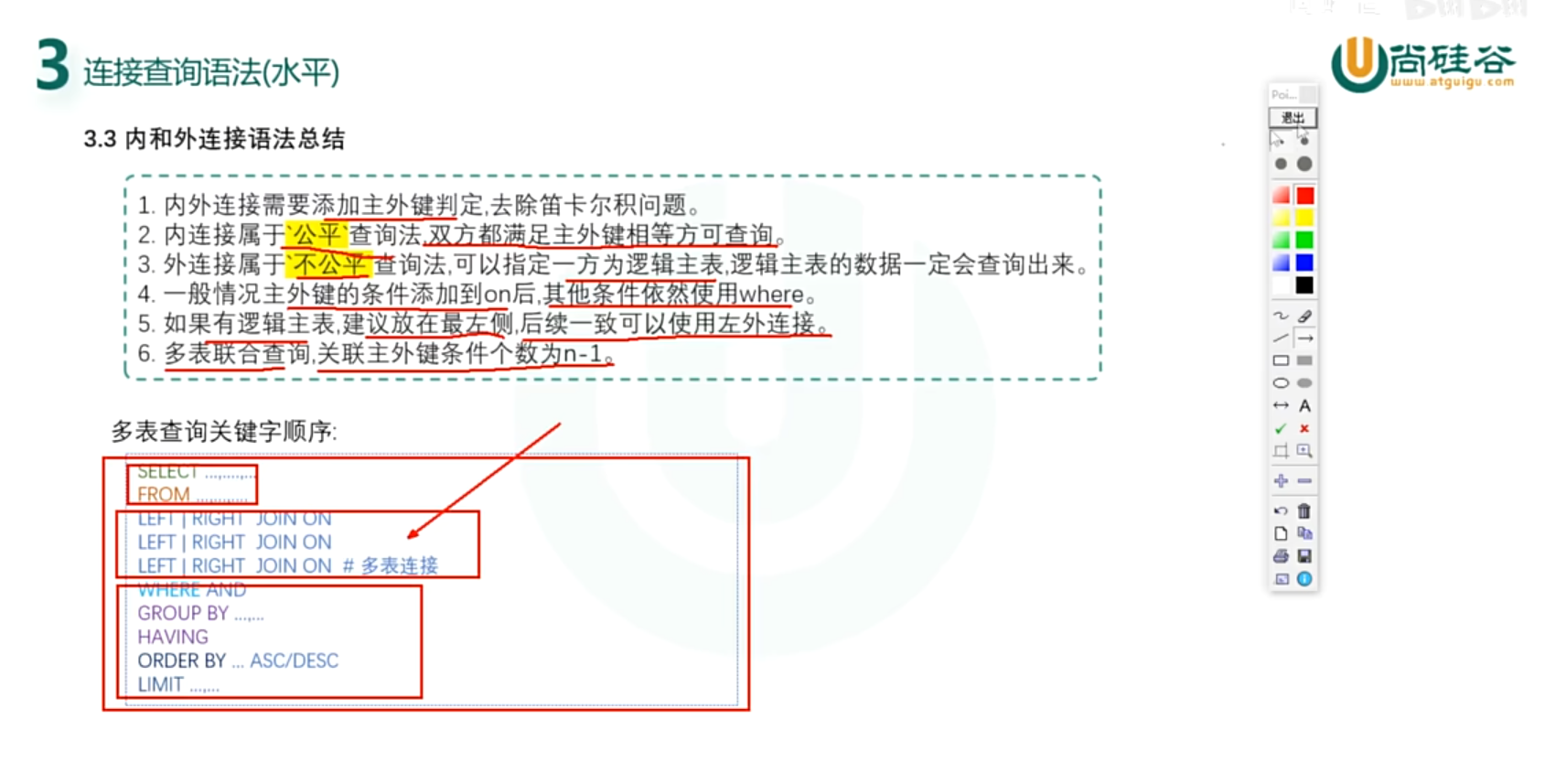 子句用于定义表之间的关联条件,决定多表如何合并(哪些记录会被匹配关联)。SELECT
