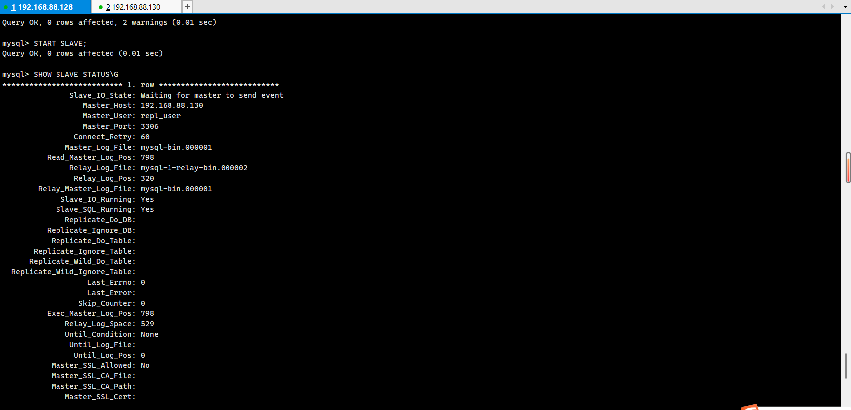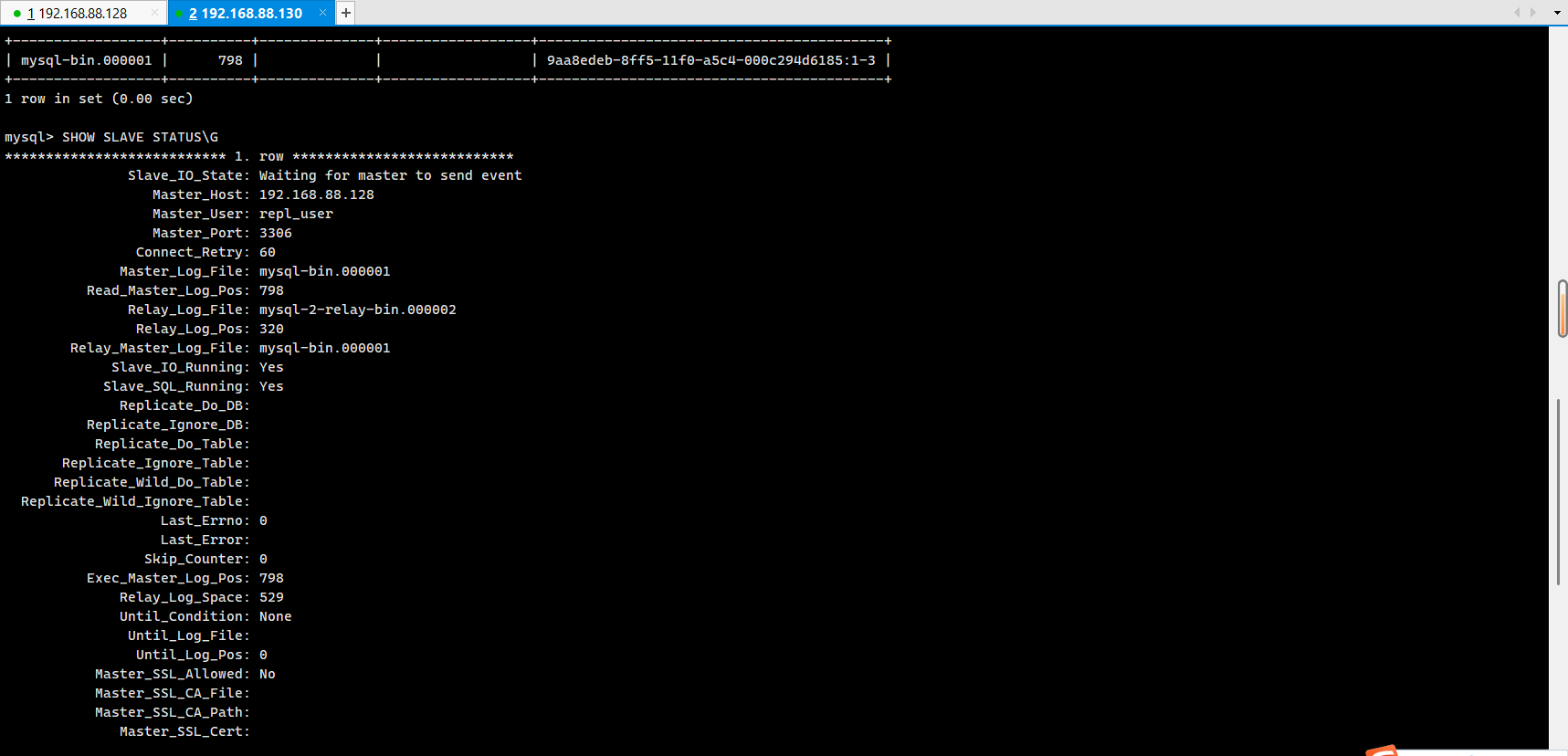 192.168.88.128(mysql-1)、192.168.88.130(mysql-2)