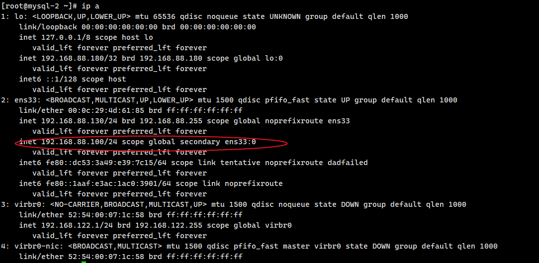 在节点 2(备节点)查看 VIP:VIP 已漂移到备节点