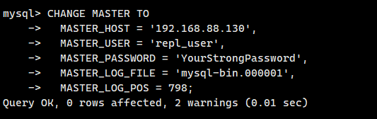 CREATE USER 'repl_user'@'192.168.88.128' IDENTIFIED BY 'YourStrongPassword';