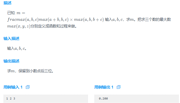 double max(double x,double y,double z){double maxn=x;if(y>maxn) maxn=y;if(z>maxn) maxn=z;return maxn;
