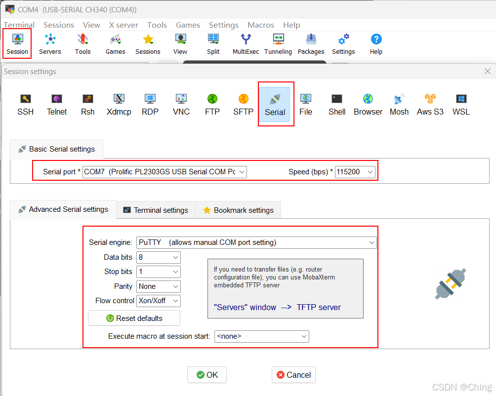 电脑打开终端:我使用MobaXterm。这里根据自己的开发板设置