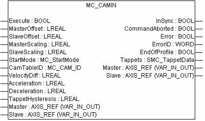 该功能块实现挺杆控制单元的功能。它基于MC_CAM_REF结构体运行(与MC_CamIn类似),但忽略原始路径信息,仅读取挺杆触发数据。