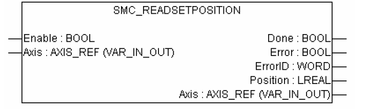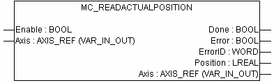 此功能块属于SM_PLCopen.lib库,用于提供驱动器的当前位置数据。
