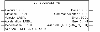 模块通过执行输入端的上升沿(从FALSE到TRUE的跳变)激活,并且在满足以下任一条件之前不会再次激活:其运动已终止、其他模块已取得该轴(AXIS_REF)的控制权,或执行输入端收到新的上升沿信号以重新启动运动。请注意,所有输入变量仅在上升沿时被读取。