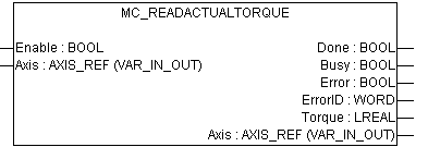 此功能块属于SM_PLCopen.lib库,用于提供驱动器的当前扭矩/功率数据。