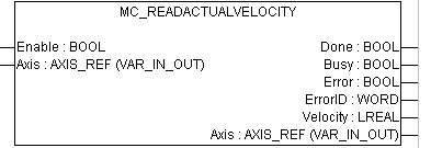 此功能块属于SM_PLCopen.lib库,用于提供驱动器的当前速度数据