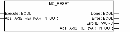 此功能块属于SM_PLCopen.lib库,用于将轴状态(SMC_AXIS_STATE)从error_stop复位至standstill。
