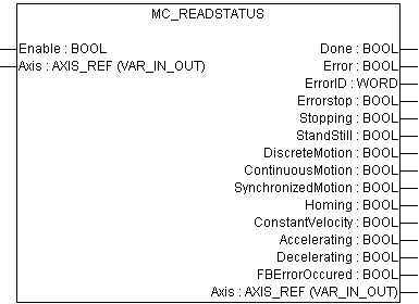 模块通过Done输出或其他逻辑输出来指示以下两种状态:输出数据的有效性(例如MC_ReadStatus)或运动过程的终止(例如 MC_MoveAbsolute)。