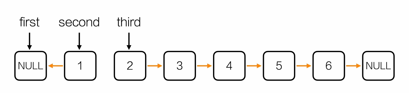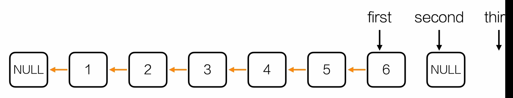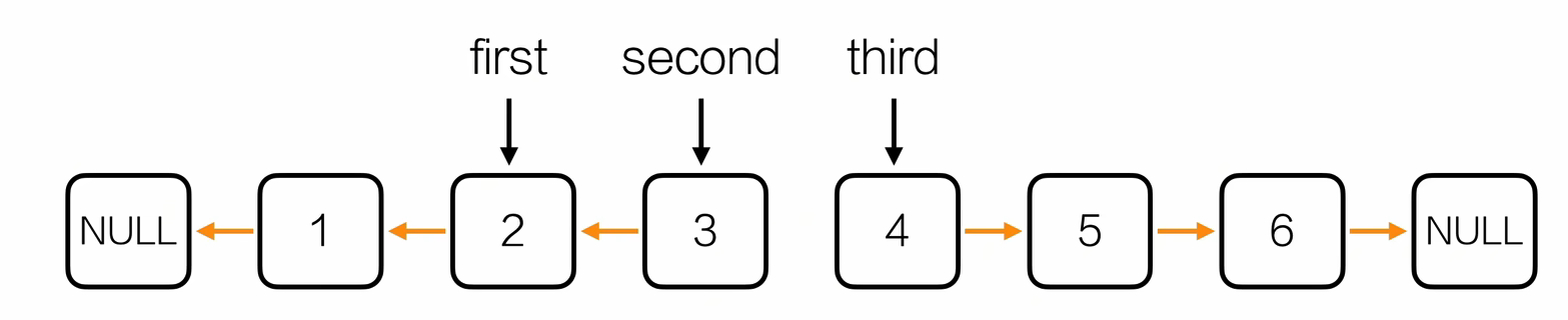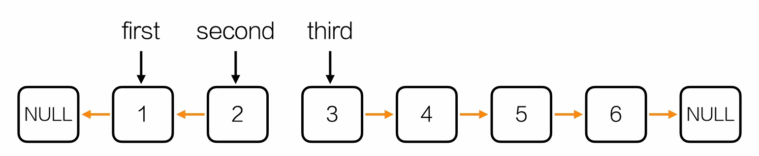 Node* reverseList(Node *head) {Node *first = NULL; // 已反转部分的头Node *second = head->next; // 待反转部分Node *third; // 暂存下一节点while (second != NULL) {third = second->next; // 暂存 nextsecond->next = first; // 当前节点指向已反转部分first = second; // first 前进second = third; // second 前进}// 建立新的头结点Node *hd = initList();hd->next = first;return hd;
