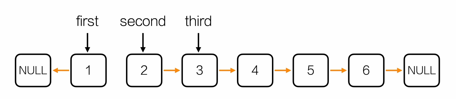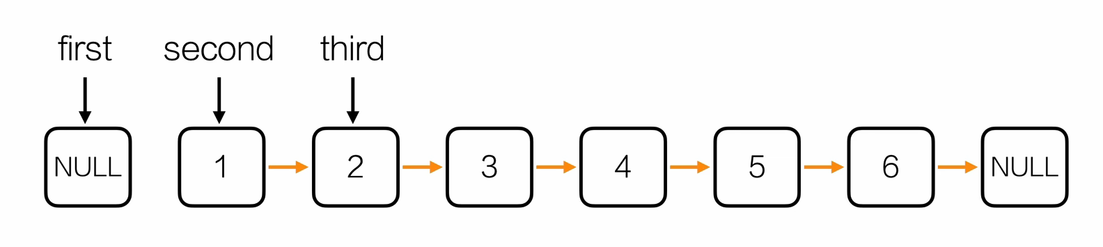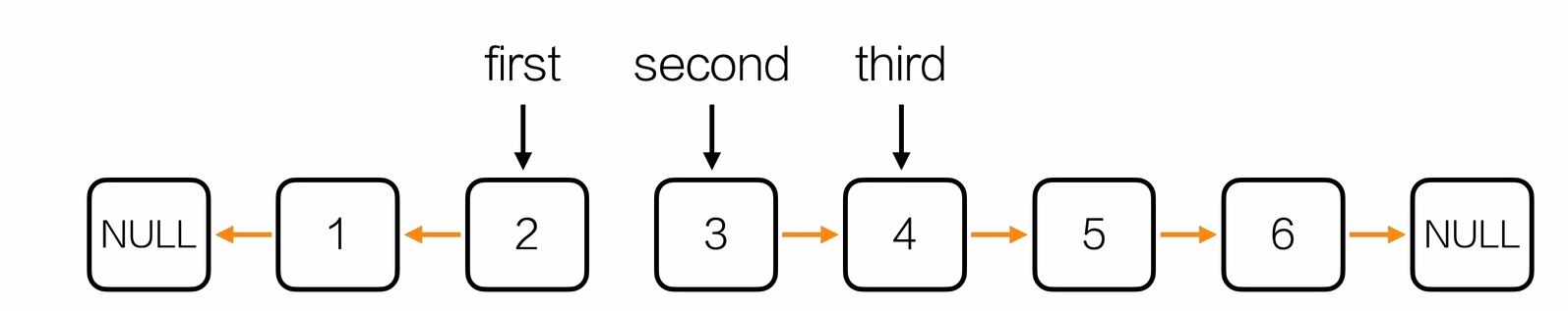 假设要找倒数第三个节点,那先让快指针走三步,走完之后再让快指针和慢指针同步去走,直到快指针指向了链表末尾的NULL,此时慢指针指到了目标