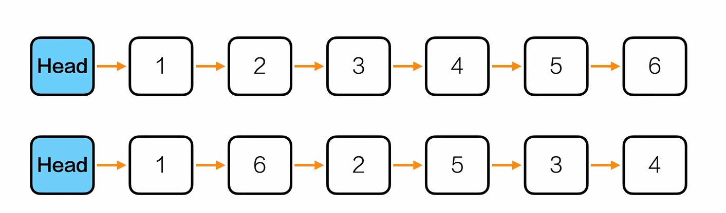 }/* -------------------- 重新排列链表 -------------------- */
