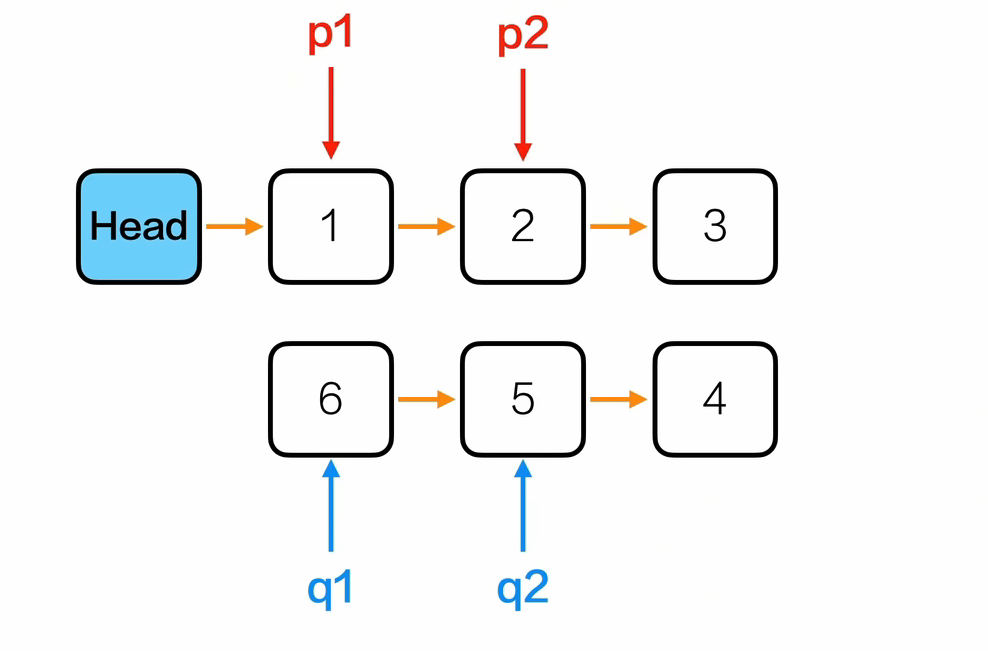 q1->next = p2结果: