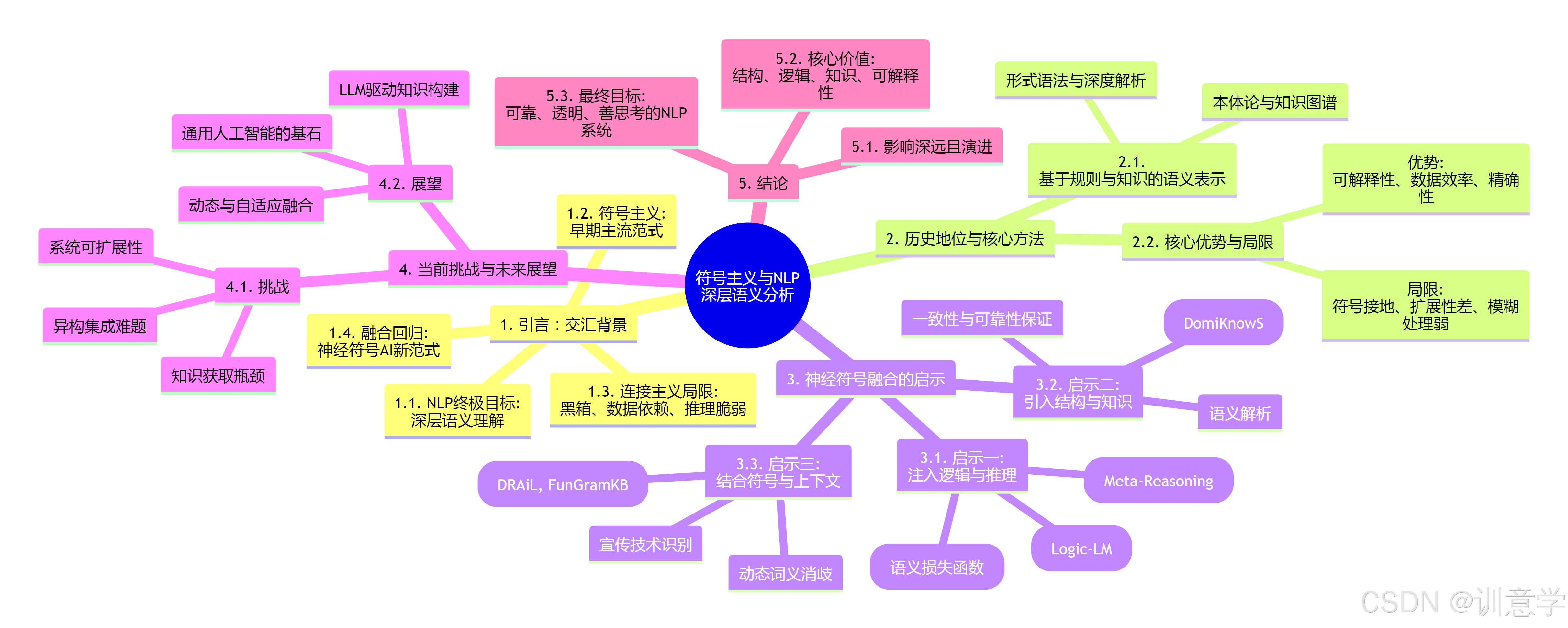 在人工智能(AI)的发展历程中,符号主义(Symbolicism)与连接主义(Connectionism)是两条核心的技术路线。随着深度学习的浪潮,以大型语言模型(LLM)为代表的连接主义方法在自然语言处理(NLP)领域取得了主导地位。然而,这些模型在深层语义理解、逻辑推理、可解释性和可靠性方面仍面临瓶颈。在此背景下,符号主义的核心思想正在以一种新的融合形式回归,即神经符号AI(Neuro-Symbolic AI),为攻克NLP深层语义分析的难题提供了关键的影响和深刻的启示。本报告旨在深入探讨符号主义的历史地位、核心方法、局限性,并重点分析其如何在现代NLP研究中,通过与连接主义模型融合,推动深层语义分析能力的边界。