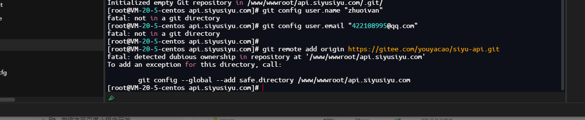 [root@VM-20-5-centos api.siyusiyu.com]# git remote add origin https://gitee.com/youyacao/siyu-api.git