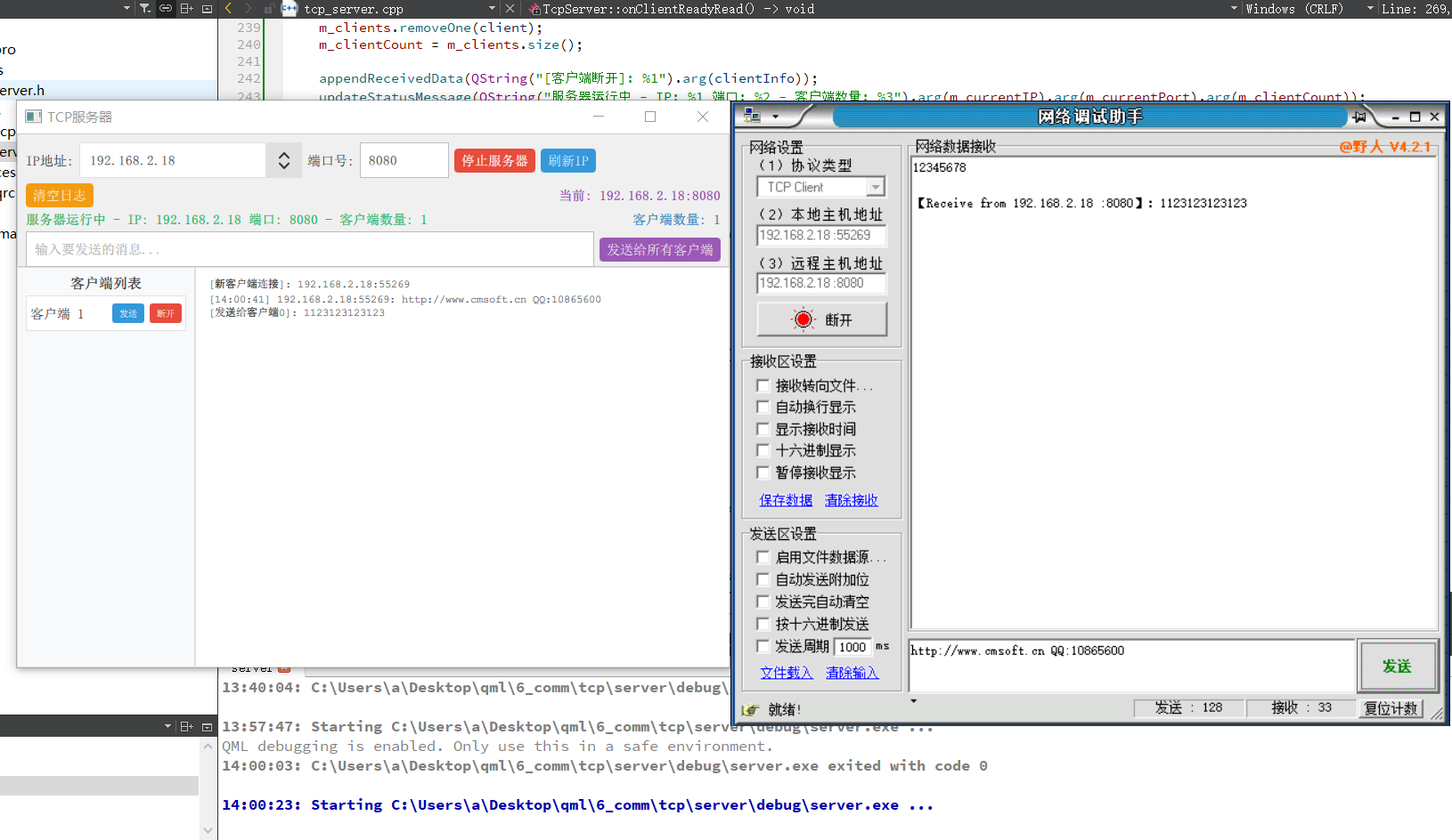 开源 C++ QT QML 开发(十一)通讯--TCP服务器端