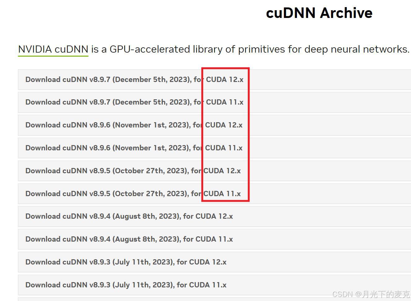 CUDNN的版本信息也指明了适配哪种CUDA版本,按照版本下载即可