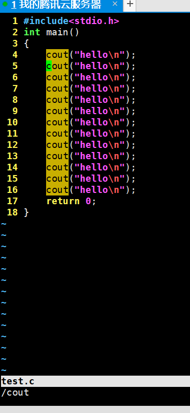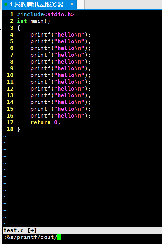 如果我们想将printf全部替换为cout , 就可以使用命令 :%s/prntf/cout/