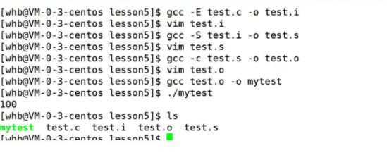 预处理阶段完成头文件的展开、宏的替换、条件编译以及去除注释,选项 -E 是指预处理完成后停止(生成.i文件),不进行编译,-o选项是将生成的文件输出到test.i文件中
