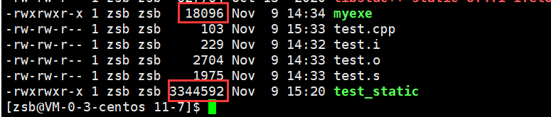 可以看到使用动态链接的可执行程序大小比使用静态链接的可执行程序大小要小