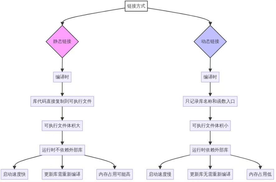 - 更新不便:当依赖的库有更新(比如修复了漏洞或增加了新功能),必须重新编译整个程序才能使用新的库版本。