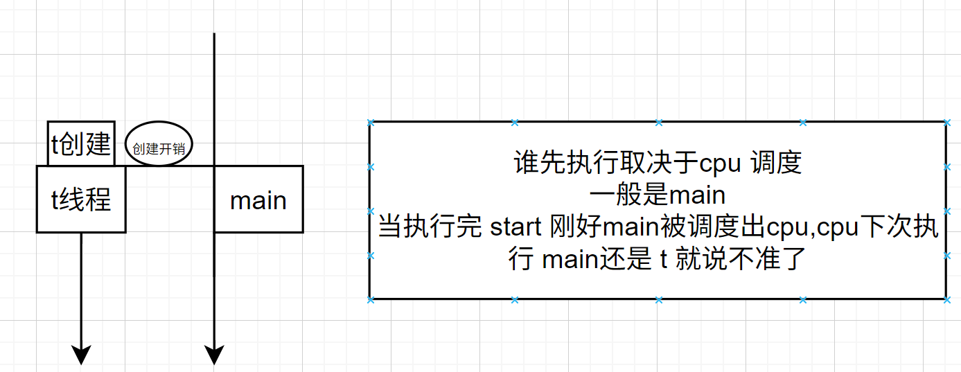 1.调用 start 会真正调用系统中创建线程的 api start 执行不会产生阻塞,按代码顺序立刻向下执行。