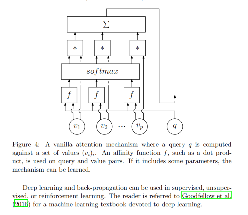 该机制会针对同一查询对集合中的所有元素重复执行。这些标量经过标准化处理(例如使用softmax函数),用于定义集合中各元素表示的加权总和,进而应用于构建查询的神经网络。这种基于内容的软注意力机制由Bahdanau等人(2015年)首次提出。