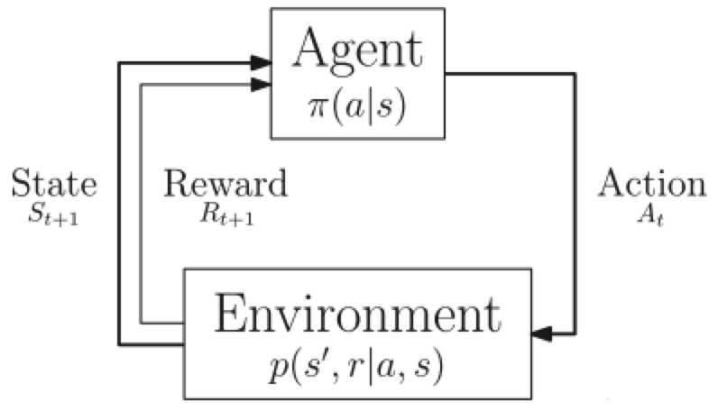 在强化学习中,代理人(agent)通过马尔可夫决策过程与环境交互,如图所示。在每个时间步,代理处于给定的环境状态,并根据其(可能是随机的)策略选择一个动作。结果,它从环境中获得奖励并进入新的状态。强化学习的目标是训练智能体最大化未来奖励的预期总和,称为回报。对于给定的策略,给定当前状态(分别是状态和动作对)的预期回报被称为价值函数(resp. state action value function)。值函数遵循贝尔曼方程,因此可以将问题表述为动态规划,并近似求解。代理不需要知道环境的动态,而是直接或间接地学习,从而产生探索与利用的两难境地:在探索新状态以提炼环境知识以实现可能的长期改进之间进行选择,或利用最知名的到目前为止学习的场景(往往处于已访问或可预测的状态)。