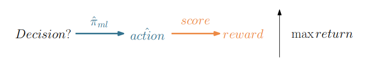 我们在第 2.2 节介绍的状态/动作马尔可夫决策过程框架中构建了这两种动机,其中环境是算法的内部状态。我们关心组合优化算法使用的学习算法决策,我们将决策函数称为策略,即在给定所有可用信息的情况下(在Markov决策过程设置中,如果信息足够充分地表征当时的环境,则为一种状态), 返回(可能是随机的)要采取的行动。策略是我们想要使用机器学习学习的功能,我们将在下面展示这两种动机如何自然地产生两种学习设置。请注意,马尔可夫决策过程的轨迹长度值为 1 的情况是一种常见的边缘情况(称为老虎机设置)轨迹长度为1意味着智能体仅执行一次动作(即单步决策),随后环境反馈奖励并终止(或进入终止状态)。这类似于“老虎机”(Bandit)问题中的单次拉杆。边缘情况原因:许多MDP算法(如动态规划、值迭代)的收敛性依赖于多步交互的累积效应。单步轨迹无法体现长期策略的价值。在强化学习中,探索(exploration)和利用(exploitation)的权衡在长轨迹中更显著,而单步决策会掩盖这些动态。在这种情况下,这种公式似乎有些过分,但它仍然有助于比较方法。在使用机器学习来近似决策的情况下,策略通常是通过模仿学习来学习的,这要归功于演示,因为预期的行为是由专家(也称为 oracle,即使它不一定是最优的),如图所示。在这种情况下,学习者没有被训练来优化性能度量,而是盲目地模仿专家。