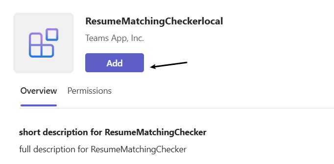 3) 在弹出的如下Teams App窗口中,点击Add按钮,