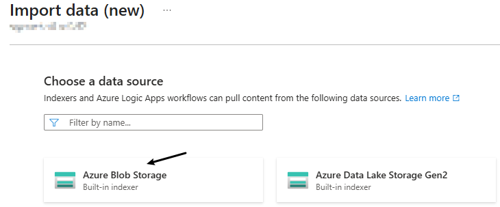 2) 在Choose a data source界面中,选择Azure Blob Storage选项,