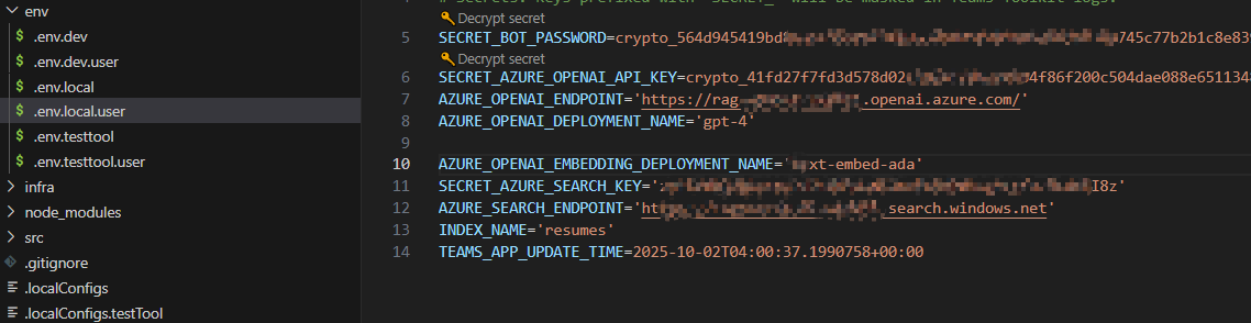 7)定制项目并配置Azure AI Search的endpoint, key, index name, embeding model等信息,